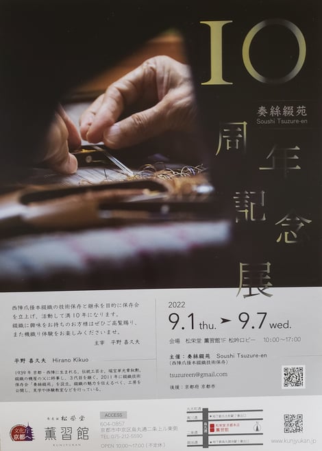 分野の異なる4 人の匠による作品展「伝え残したい京都遺産 匠の技・写真・作品展」 千両が辻にある京町屋で奏絲綴苑平野喜久夫が匠の1人で参加します。